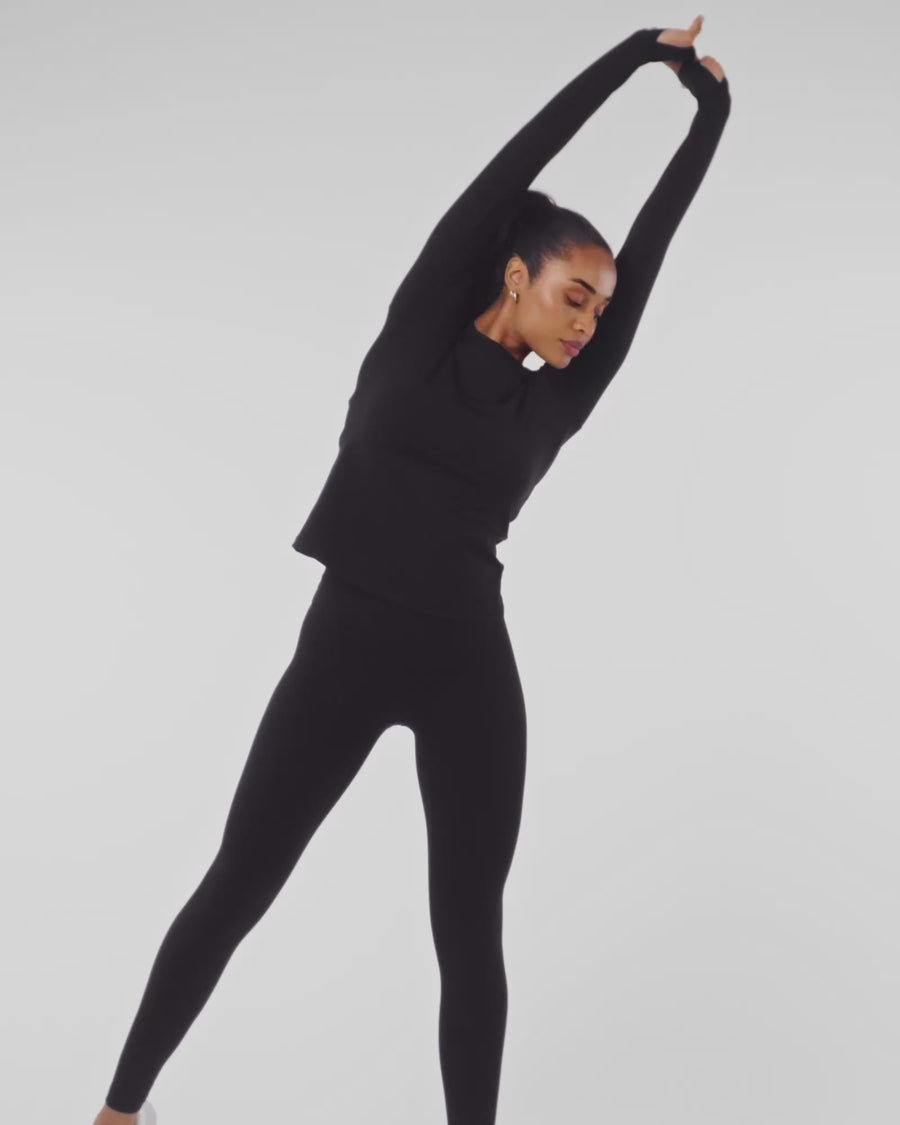 Quarter Zip Long Sleeve Top - Black