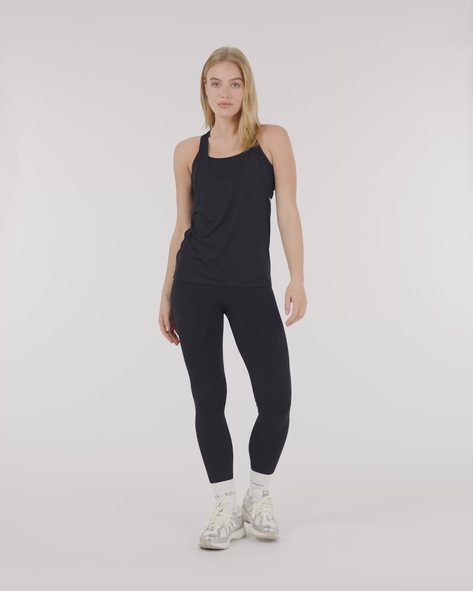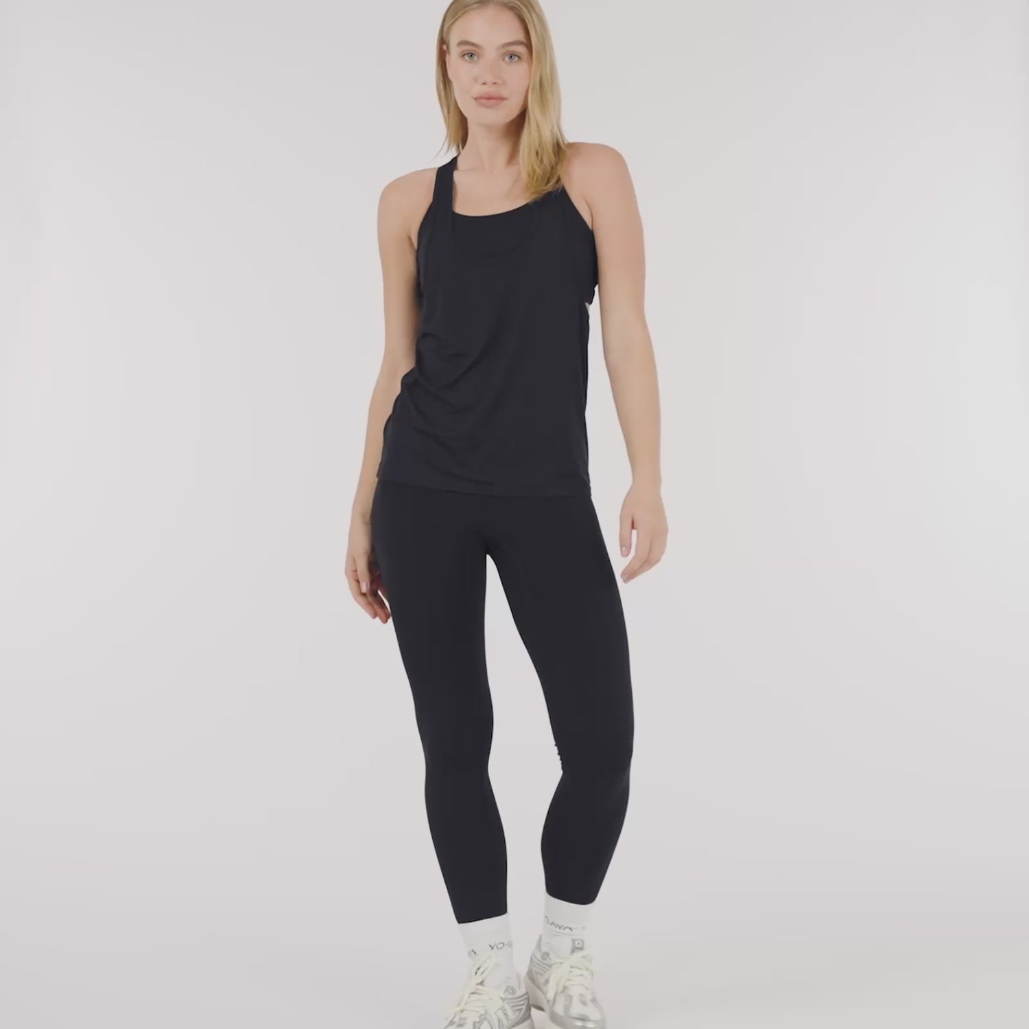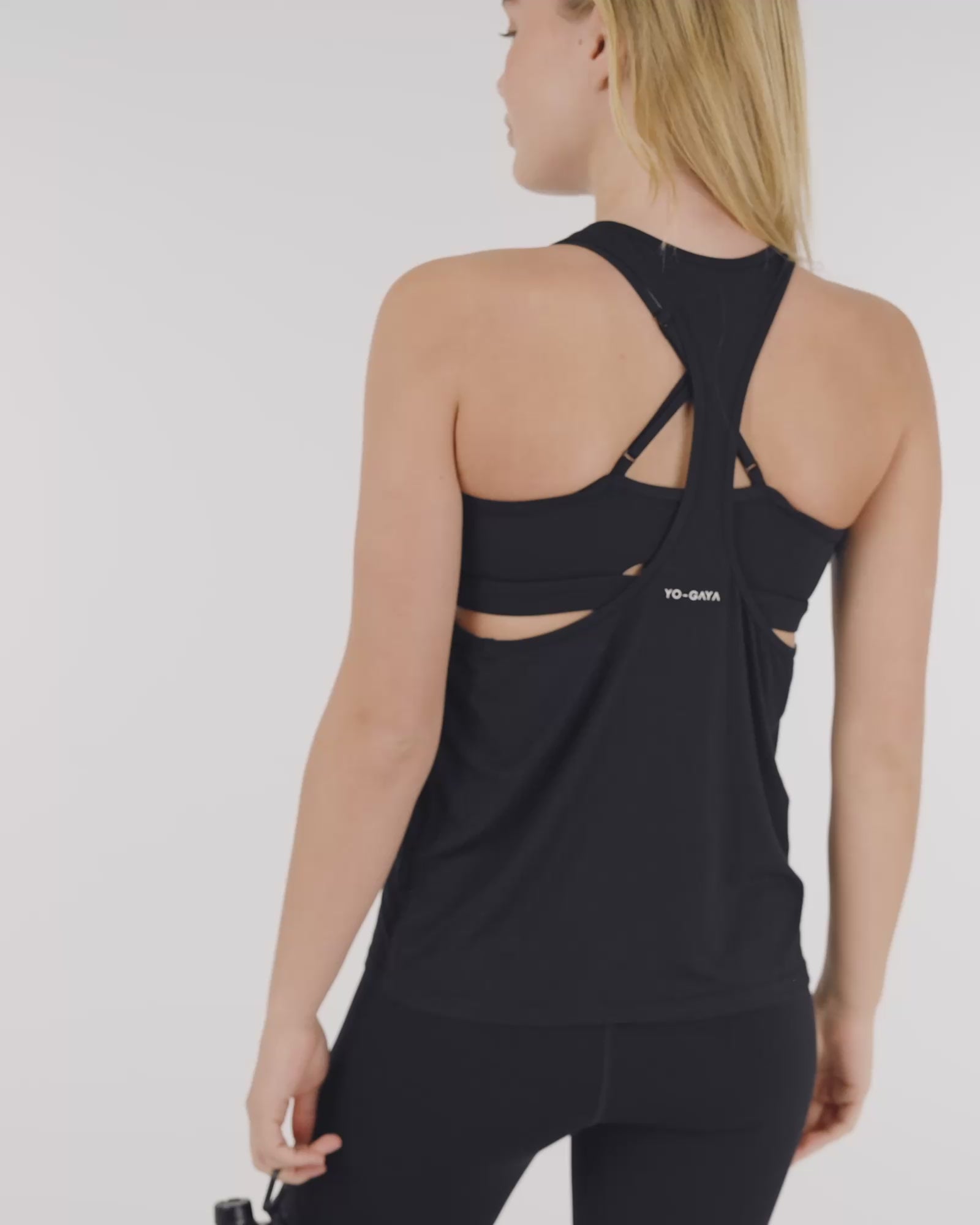 The YO-GAYA Loose Tank Top is designed for breathability and movement, making it the perfect lightweight layer for your workouts. With a racerback cut and open-back detail, this top allows for full ventilation and easy layering over your favorite sports bra.