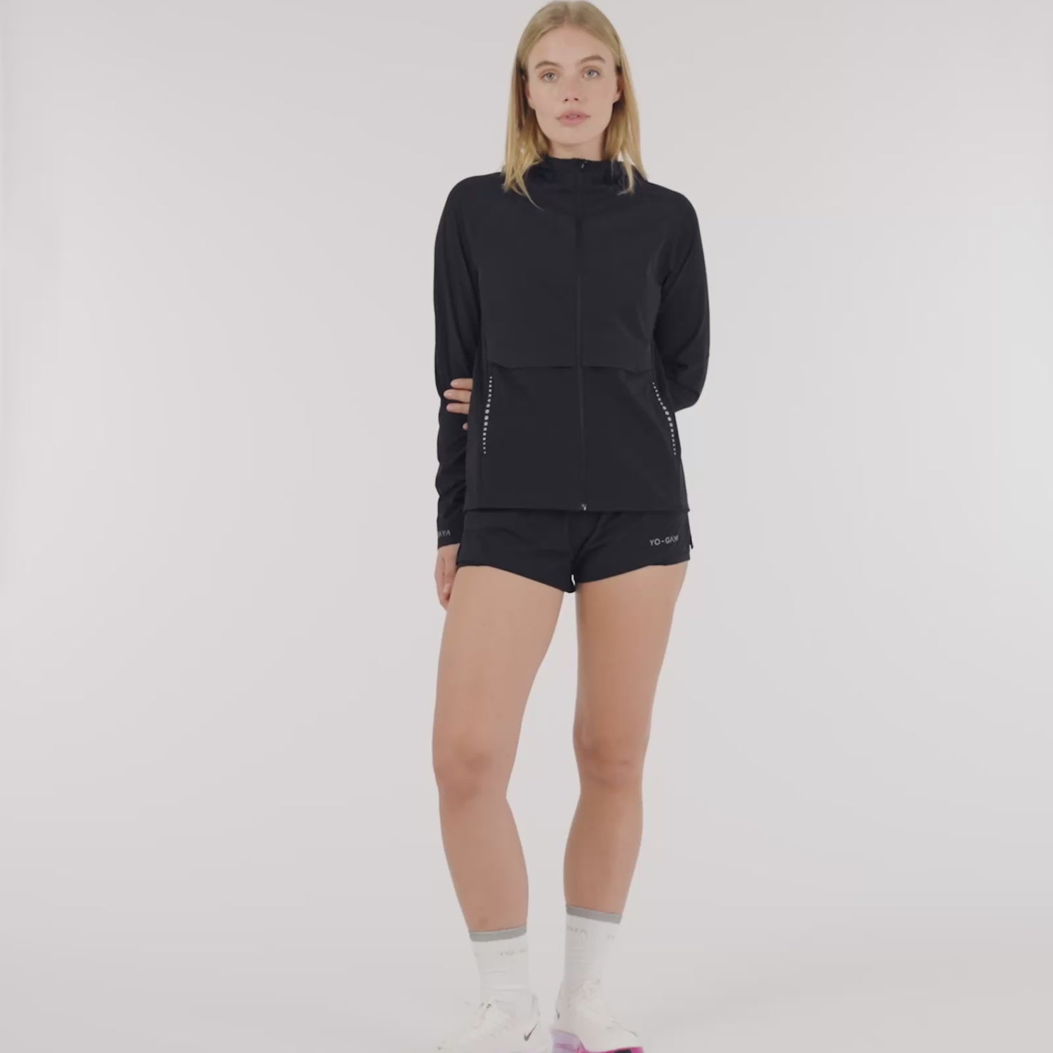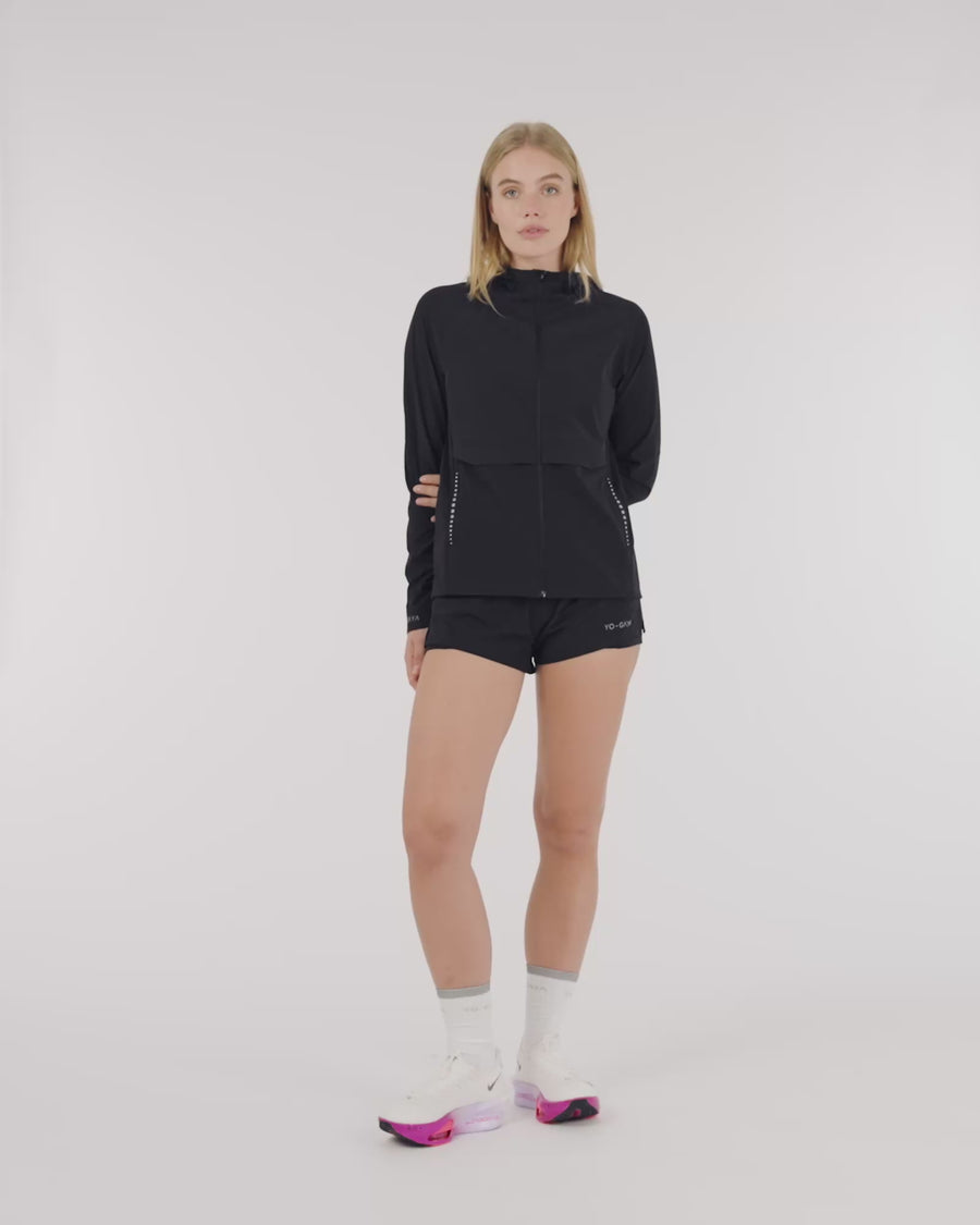 This lightweight running jacket is designed to keep you protected and comfortable in all conditions. With zippered pockets, an adjustable hood, and breathable fabric with mesh ventilation, it offers both function and freedom of movement. Reflective logos and details provide extra safety in low light, so you can keep going no matter the time of day. The light, protective knit material gives you extra wind protection during your run. Plus, it's still breathable so you won’t trap in the sweat.